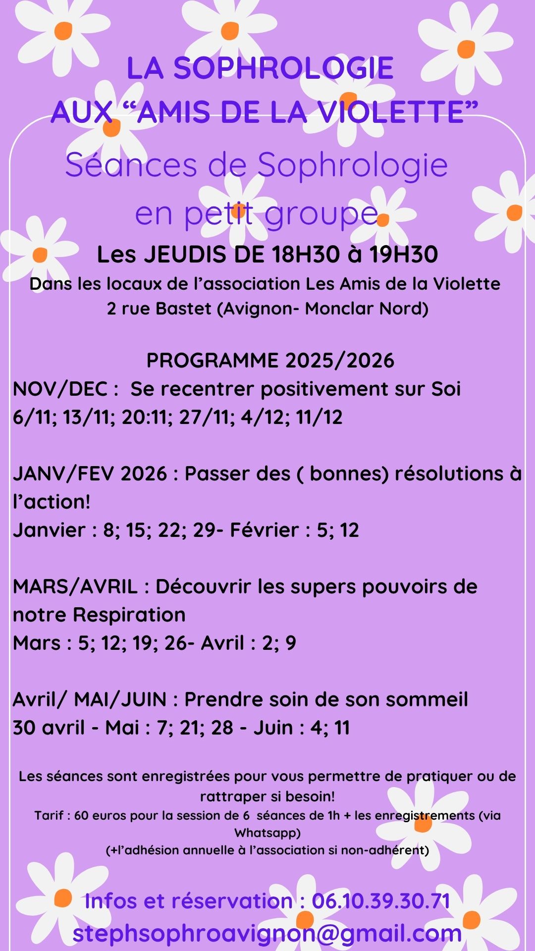 SOPHROLOGIE Inscriptions programme 2026 (nb. de places limité) ---->